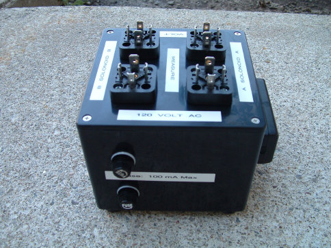 This portable custom built unit compliments the service technicians ability to test hydraulic proportional valves. It contains an interchangeable corresponding electronic amplifier card for the various valves and an internal variable power supply. It is powered by a regular 120 volt AC outlet and uses standard DIN 43650 connectors for the valve (cables on the back). This unit also has precision voltage and current digital meters and can isolate exiting machine valve controls to assist in quik troubleshooting results or for just plain proportional valve and control testing.